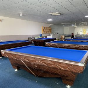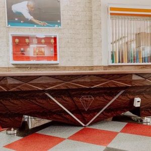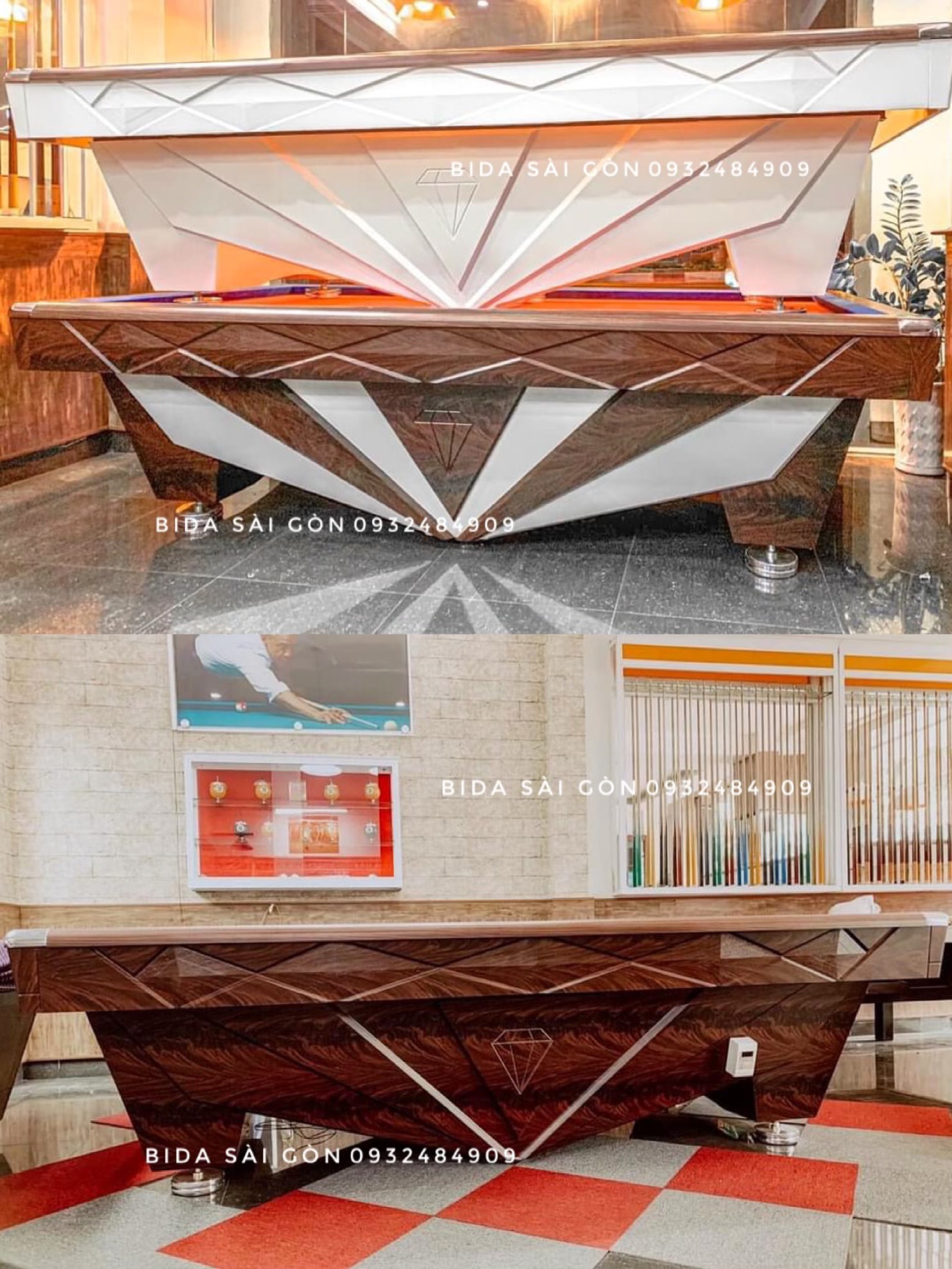 - Mẫu bàn Kim Cương được độc quyền thương hiệu tại Bida Sài Gòn , được lắp ráp bởi tay nghề điêu luyện của những người thợ với hơn 10 năm trong nghề , các cạnh băng khớp với nhau hoàn hảo , mặt đá chuẩn loại 1 , phảng lì với độ bền cao , không rung lắc chuẩn thi đấu